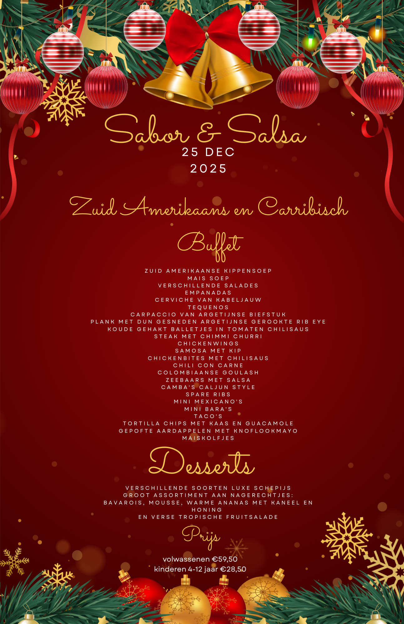 Laat je meevoeren naar warme sferen tijdens ons Zuid-Amerikaans & Caribisch kerstbuffet βSabor & Salsaβ!